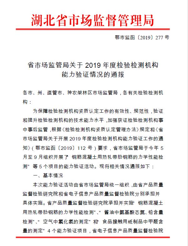 省市場監(jiān)管局關(guān)于2019年度檢驗檢測機(jī)構(gòu) 能力驗證情況的通報